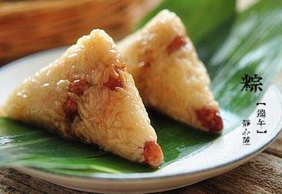 粽,即“粽籺”,俗稱粽子,主要材料是糯米、餡料,用箬葉(或柊葉)包裹而成,形狀多樣,有尖角狀、四角狀等。粽子由來久遠(yuǎn),最初是用來是祭祀祖先神靈的貢品。傳入北方后,用黍米(北方產(chǎn)黍)做粽,稱“角黍”。由于各地飲食習(xí)慣的不同,粽形成了南北風(fēng)味;從口味上分,粽子有咸粽和甜粽兩大類。端午食粽的風(fēng)俗,千百年來在中國盛行不衰,已成了中華民族影響最大、覆蓋面最廣的民間飲食習(xí)俗之一,而且流傳到朝鮮、日本及東南亞諸國。