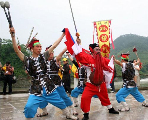 跳鐘馗:一種民間舞蹈,又稱“嬉鐘馗”。據(jù)悉,跳鐘馗,源自北宋,是古徽州遺存下來的一種傳統(tǒng)民俗表演,有《出巡》、《嫁妹》、《除五毒》等多種內(nèi)容,體現(xiàn)了民眾崇尚鐘馗的剛正不阿和祈盼除害降福的美好愿望。在民間,“鐘馗”是避邪扶正的象征,端午跳鐘馗,寓意為消除五毒,四季平安,人壽年豐。到了清代,江南蘇、浙一帶的居民大都在農(nóng)歷五月于大門或堂中掛鐘馗圖一月,以期驅(qū)邪除害、祛兇引福。