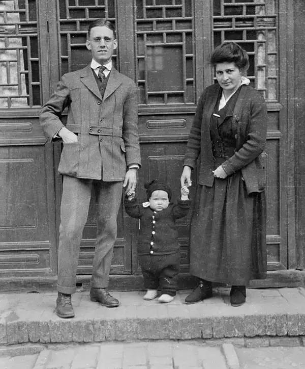 1917年,四川省理縣,時任雜谷屯守備的高益齋(藏族)與妻子索黛玉及孩子。