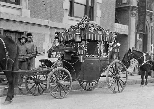 天津,東馬路青年會門前等待新人的馬拉轎車