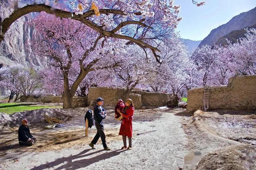 陣陣輕風吹過,粉白的花瓣隨風飄揚,開滿杏花的村落,就像是一場色彩的盛宴,伴著圣潔的雪山和蒼涼的峽谷,美得令人窒息。
