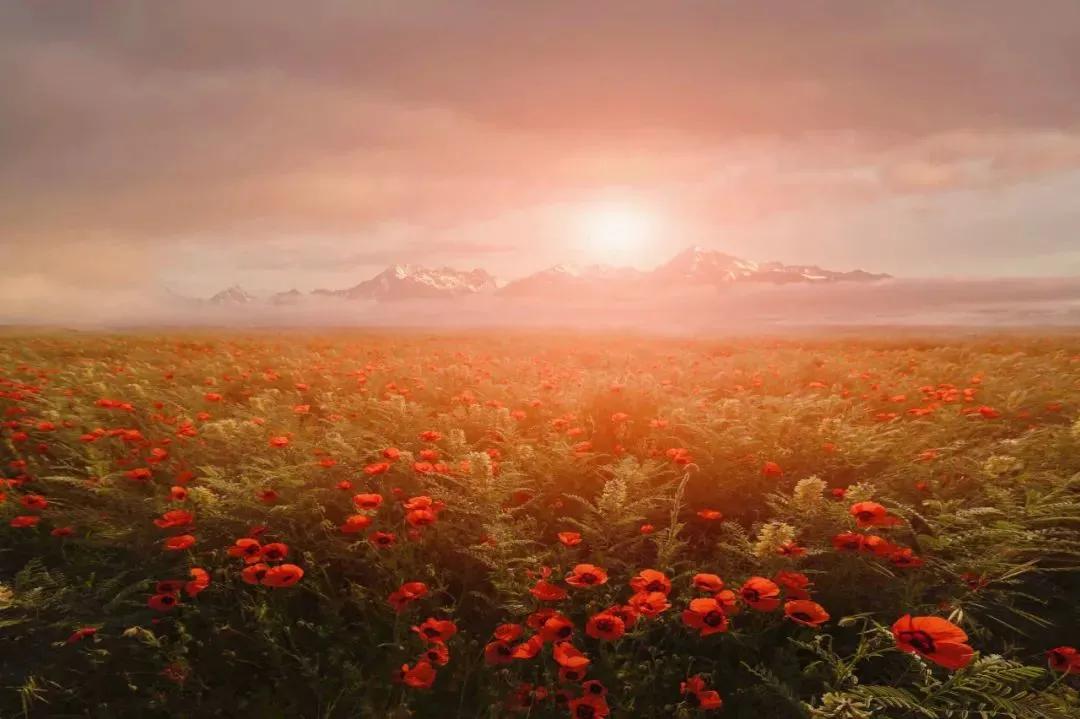 每到五月,伊犁河谷的紅花就進入了盛放的季節,如同緋紅的煙霞,鋪滿了山地草原,隨風輕舞,那淡淡的清香讓人如癡如醉。