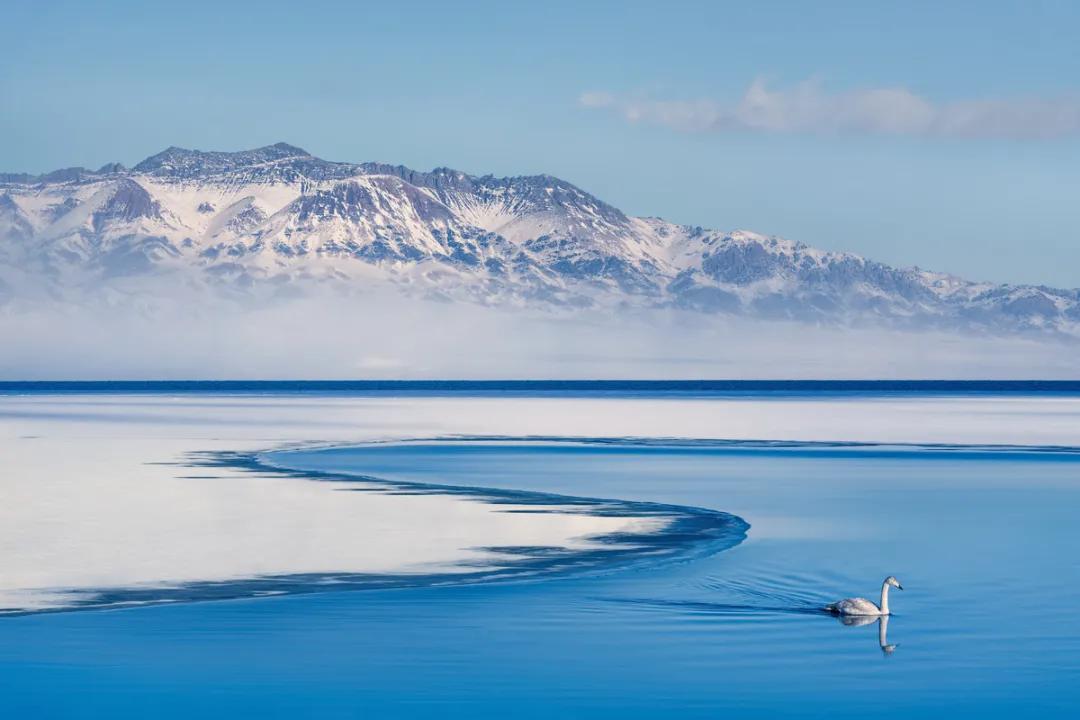 尤其是被冰雪覆蓋后的賽里木湖,成為了更加極致純凈的世界。