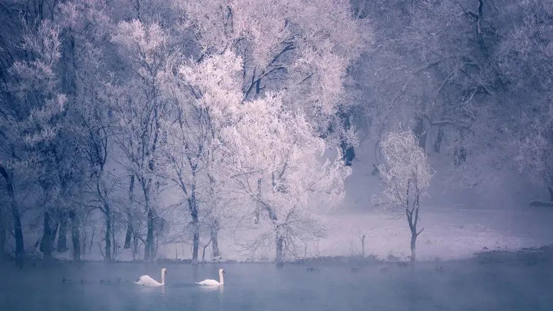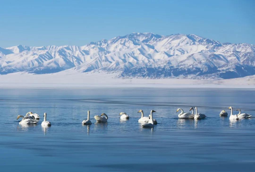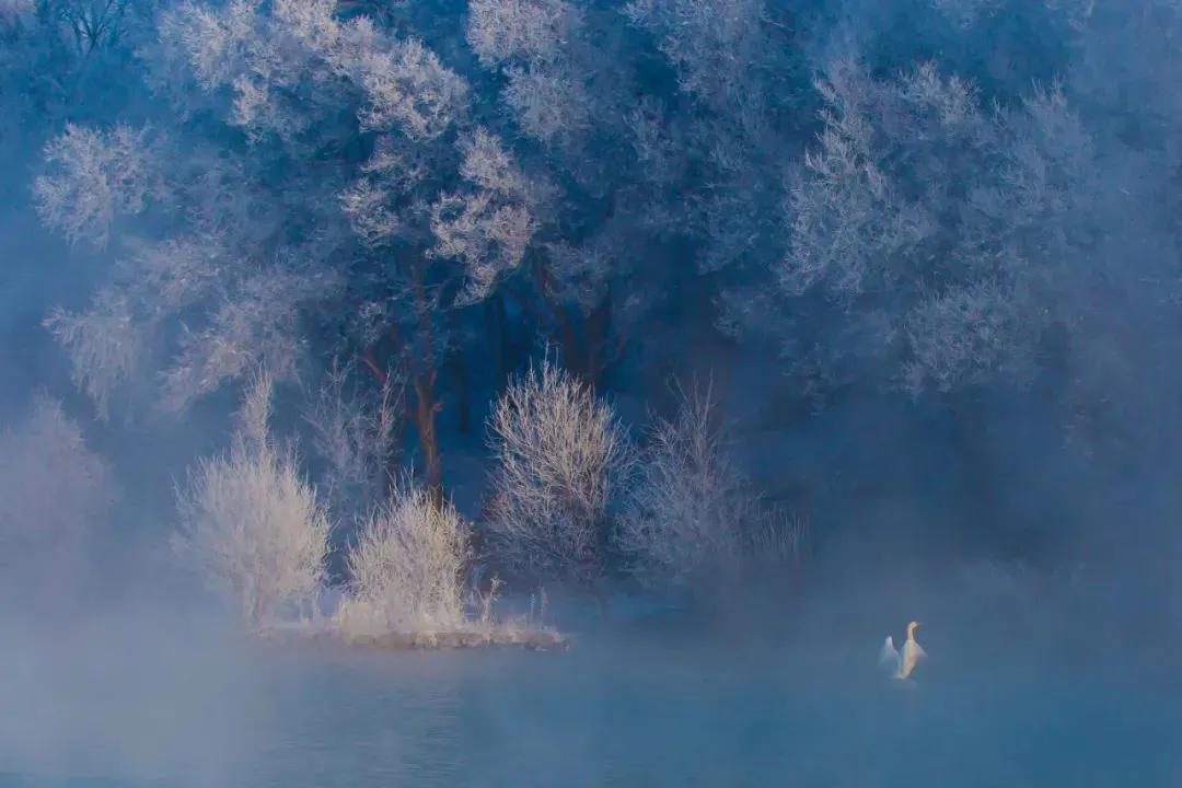 每年的10月下旬大群的天鵝就會從巴音布魯克草原遷徙而來,在這里度過整個冬天,當岸邊的霧凇成了背景,那優雅的身姿也就成了最動人的柔情。