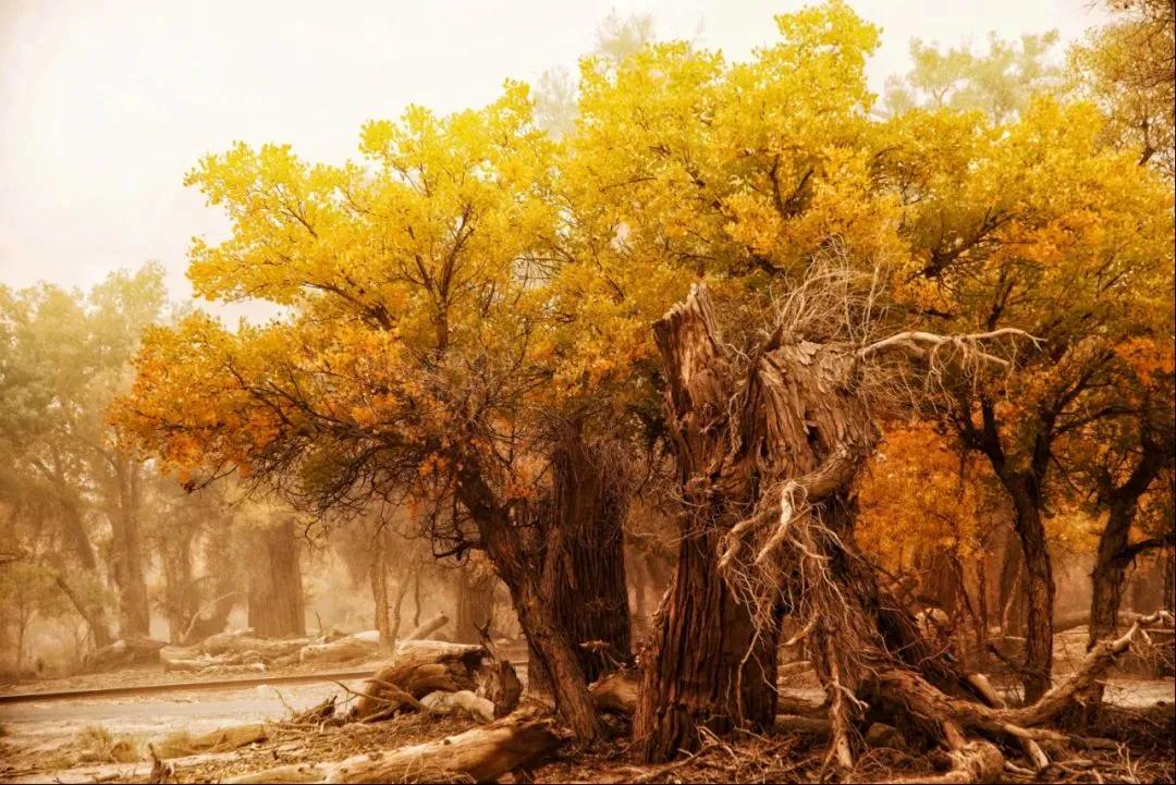 一場秋雨一場寒,當白樺林的葉子漸漸凋零,那沙漠里的胡楊林,卻在凄美的風中綻放著金黃的色彩,展現著它的不屈與壯美。