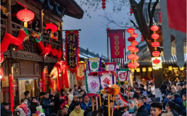 【湖南省】常德上元各家以椒為湯,加入韭菜儆果諸物款待客人,稱為“時湯”。新田縣游完龍燈后,將龍燈付之一炬,稱為“送災(zāi)”。