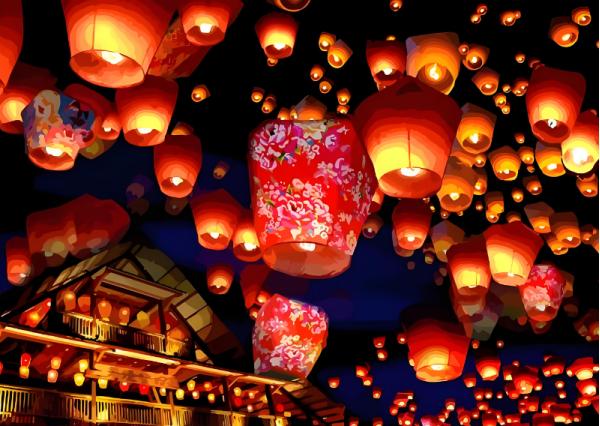 過了好久,才有個老人家想出個法子,他說:“在正月十四、十五、十六日這三天,每戶人家都在家里張燈結(jié)彩、點響爆竹、燃放煙火。這樣一來,天帝就會以為人們都被燒死了。”大家聽了都點頭稱是,便分頭準(zhǔn)備去了。到了正月十五這天晚上,天帝往下一看,發(fā)覺人間一片紅光,響聲震天,連續(xù)三個夜晚都是如此,以為是大火燃燒的火焰,心中大快。人們就這樣保住了自己的生命及財產(chǎn)。為了紀(jì)念這次成功,從此每到正月十五,家家戶戶都懸掛燈籠,放煙火來紀(jì)念這個日子。
