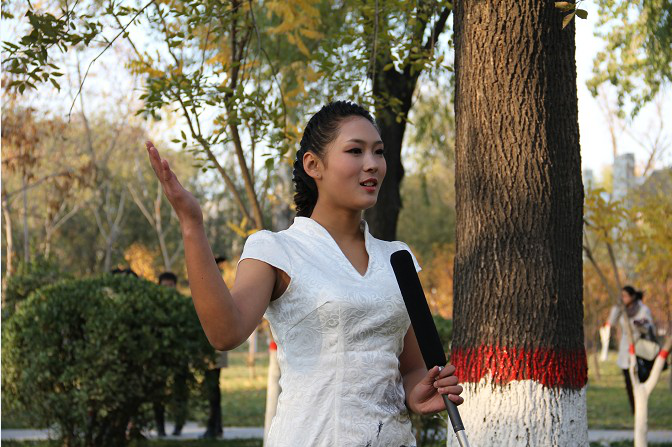 從下午2:20到5:20,在這個(gè)陽(yáng)光明媚的下午,選手們或以歌聲或以戲曲吸引觀眾,或以武術(shù)展現(xiàn)自己,總之選手們各顯其能。經(jīng)過(guò)三個(gè)小時(shí)的拍攝,隨著夕陽(yáng)西下,選手們帶著笑容離開(kāi)公園,開(kāi)始新一輪比賽的準(zhǔn)備。