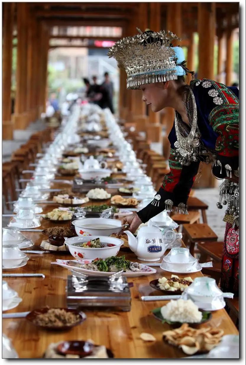 吃得安心西江安排特色長桌宴酸湯魚火鍋品苗家米酒,體驗苗寨人家的“高山流水”,感受苗妹的熱情