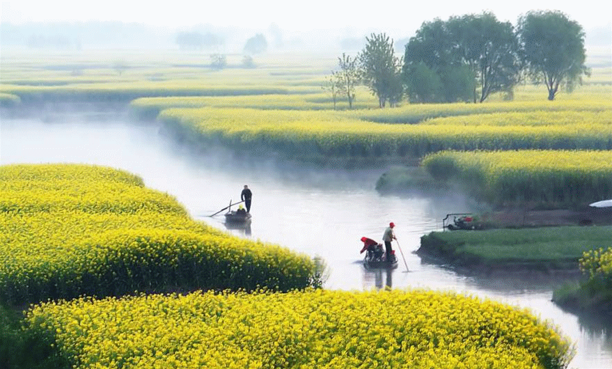 早起集合趕往全國最大的水上油菜花海【千垛菜花垛田風(fēng)景區(qū)】,千垛景區(qū)以千島樣式形成的垛田景觀享譽全國,有“千島油菜花”之稱。千百垛田漂浮于水中,云蒸霞蔚,煞是壯觀。垛田是興化市一種獨特的農(nóng)田地貌,每當(dāng)枯水季節(jié),百姓們就將低洼地區(qū)水中的泥土挖上來,堆積到較高的地方,形成了一塊塊水中小島式的垛田。置身其中,如同走進古人擺設(shè)的水中“龍門陣”。乘坐搖櫓船在油菜垛田間穿梭,‘舟行碧波上,人在畫中游’的詩情畫意在這里盡顯無疑。盡情暢玩后回返聊城。