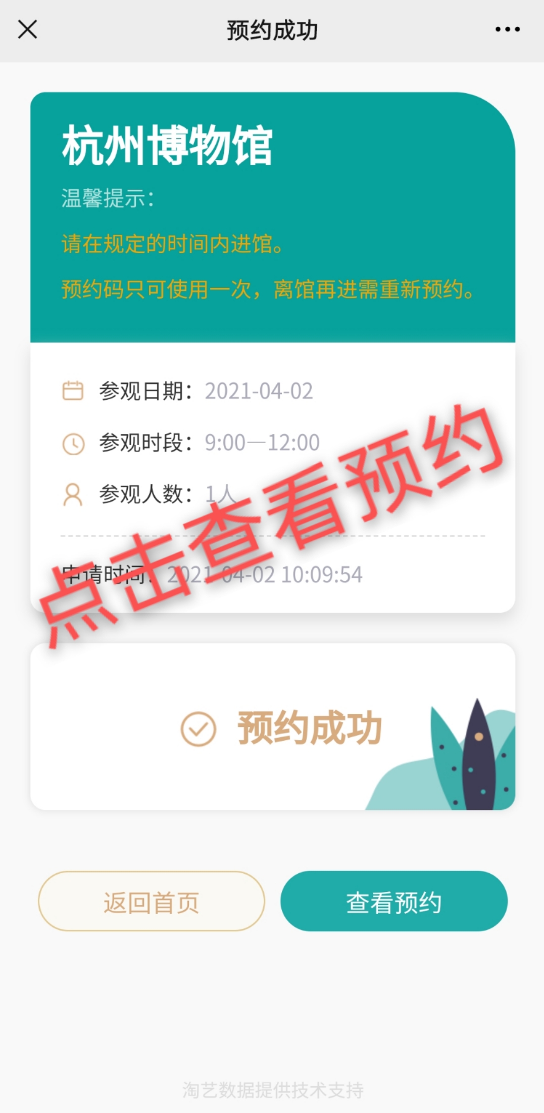 2. 每張有效身份證件每個時段限約1次,每次可預約5人。請務必截屏保存預約二維碼(也可通過微信預約界面進入個人->我的預約->查看獲取預約二維碼 )。觀眾到館后通過刷二維碼或預約的身份證過閘檢票進館。
