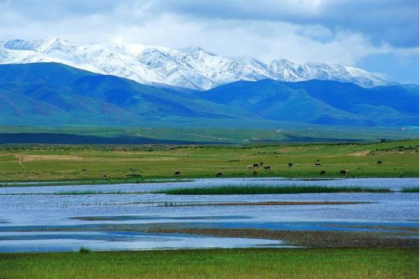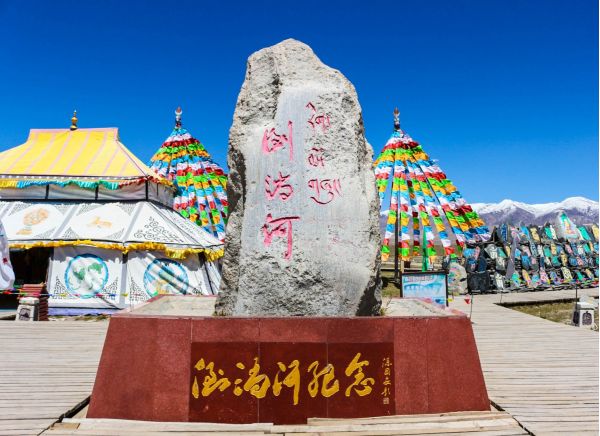 倒淌河景區內建有紀念碑、帳篷城、風力金輪,在這里,可以看河水靜靜流淌,也可以騎馬射箭,馳騁青藏草原。