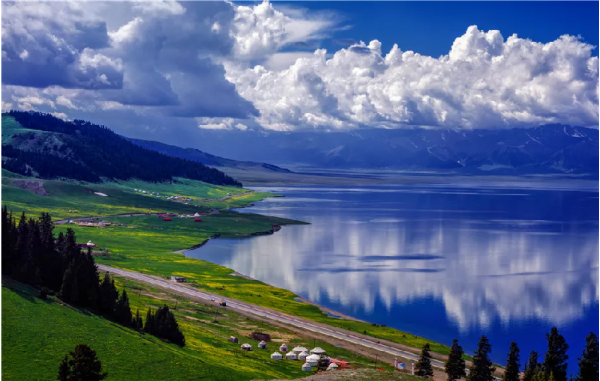 賽里木湖(Sayram Lake):省級旅游名勝景區,第五批國家級風景名勝區,是新疆海拔最高、面積最大、風光秀麗的高山湖泊,又是大西洋暖濕氣流最后眷顧的地方,因此有"大西洋最后一滴眼淚"的說法。