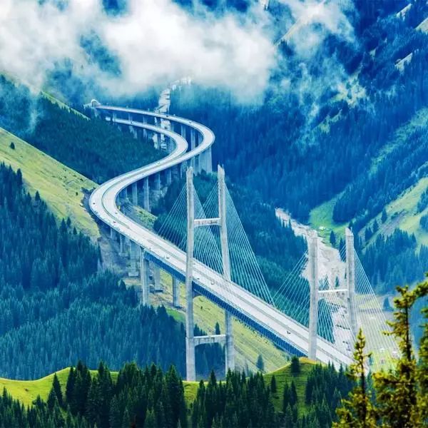 果子溝大橋作為新疆第一座斜拉橋、第一高橋,是新疆最大最重要的橋梁,同時也是全國首座公路鋼桁梁斜拉橋,它集新技術、新結構、新工藝、新設備"四新"于一身,是新疆公路建設史上一次重大突破。在新疆首次使用大體積混凝土溫度控制技術、塔梁異步施工工藝、液壓爬膜、自行式移動模架等國內領先技術,為山區高速公路施工積累了寶貴的經驗。