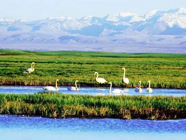 每逢春末夏初,冰雪消融,大地復蘇,旅居在印度、緬甸、巴基斯坦甚至遠到紅海和地中海沿岸諸國的天鵝和雁鷗,不遠千里成群結隊地飛到這里筑巢、換羽、求偶、生兒育女、棲息繁衍。這就是我國著名的巴音布魯克天鵝湖自然保護區。