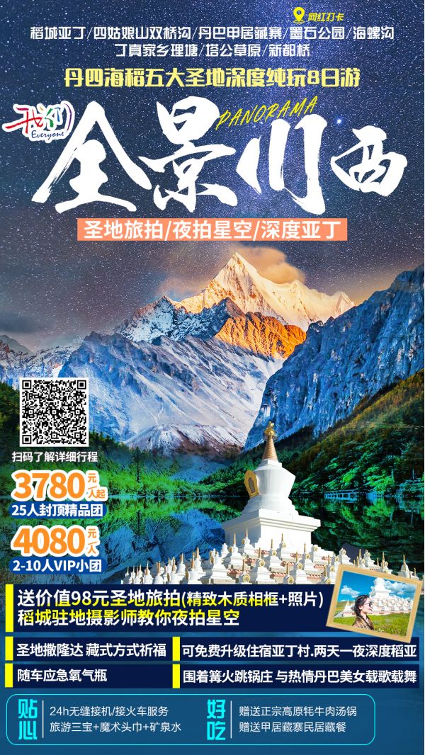 四姑娘山雙橋溝景區+丹巴甲居藏寨+墨石公園+塔公草原+新都橋+天路十八彎+卡子拉山埡口+理塘+紅草地+尊勝塔林+亞丁風景區+磨西古鎮+海螺溝國家森林公園
