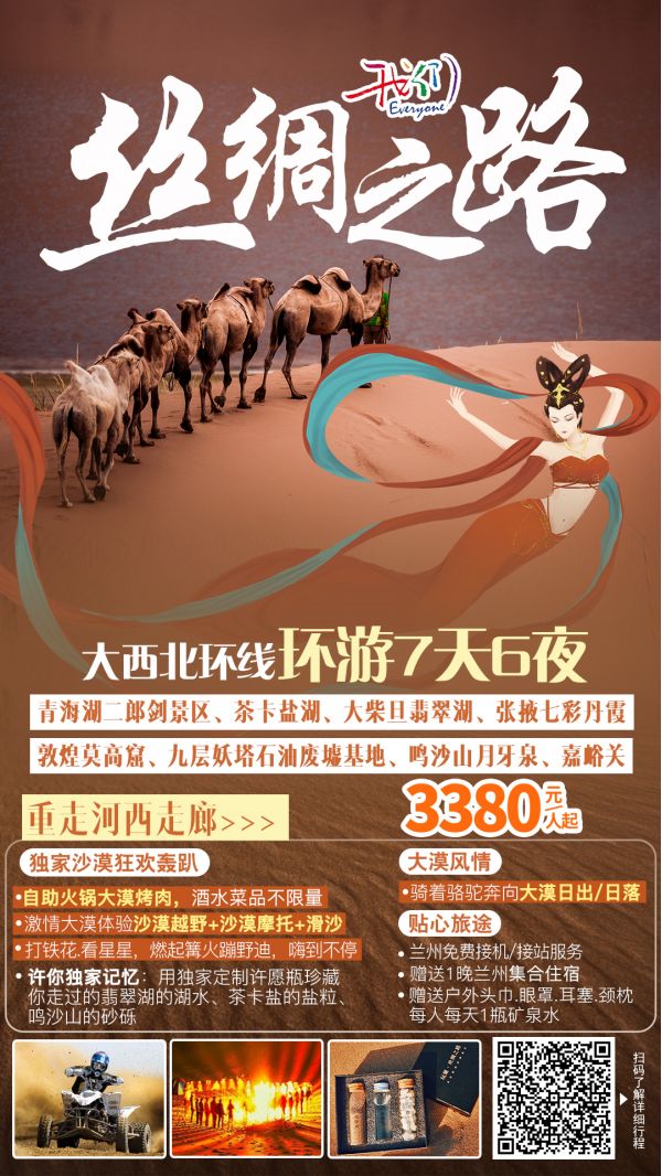 丹霞地質公園+嘉峪關+敦煌+莫高窟+鳴沙山月牙泉+阿克塞石油小鎮+大柴旦翡翠湖+柴達木盆地+茶卡鹽湖+青海湖二郎劍景區+塔爾寺