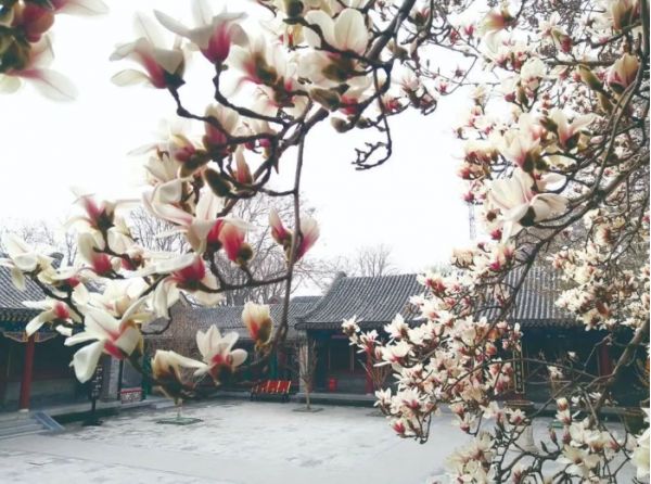 古城飛花春來早,踏青賞花正當時。在紅墻碧瓦的映襯下,正定榮國府內一枝枝柳綠花紅竟顯得如此脫俗,從中品出千年的韻味。