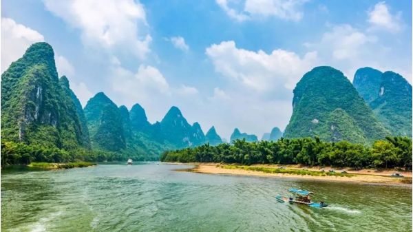 桂林山水甲天下,陽朔山水甲桂林。百里漓江、百里畫廊,兩岸山峰清秀迤邐,連綿起伏,形態萬千。水如同綠色的翡翠,清澈透亮。