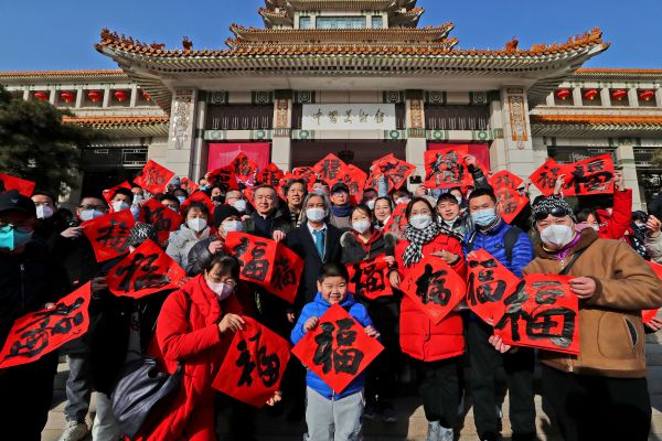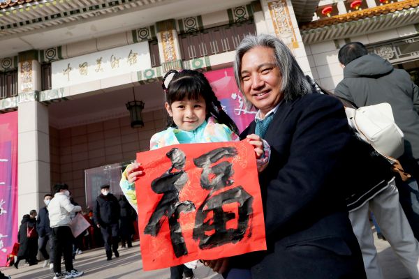 “太高興了!沒想到大年初一來看展,意外收獲了‘福’禮,真喜慶。”來自河南的游客李先生笑逐顏開。和李先生一樣,每位拿到“福”字的觀眾臉上都洋溢著喜悅,最終有近500份手書“福”字送到觀眾手中。