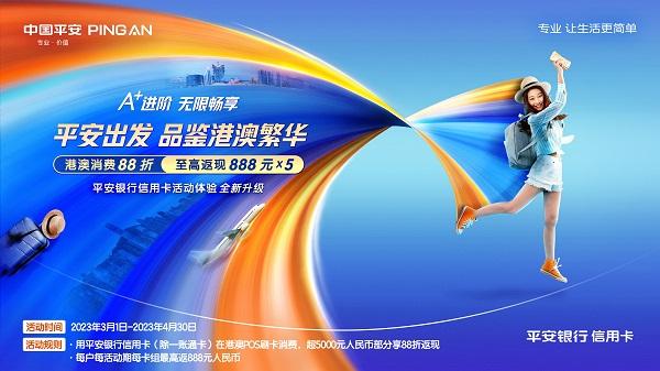 境外活動(dòng)升級(jí),緊跟國(guó)內(nèi)消費(fèi)復(fù)蘇、跨境旅游反彈局勢(shì),帶來(lái)港澳線下消費(fèi)88折、海淘消費(fèi)88折等優(yōu)惠;平安萬(wàn)事達(dá)卡、平安VISA卡、平安運(yùn)通卡等卡片,可享更多優(yōu)惠活動(dòng)、權(quán)益及服務(wù)升級(jí),為客戶提供境外出行前、中、后一站式服務(wù)。