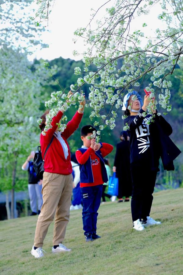 在南寧青秀山景區,潔白的豆梨如云似雪,吸引了不少游客前來踏春。“沙瓦迪卡!我現在在南寧的青秀山。看看我后面那一大片白色的花,多美麗!”來自泰國的電商主播卓冰月正拿著手機直播。在她的鏡頭里,豆梨、金魚草、蘭花、郁金香等五彩繽紛。