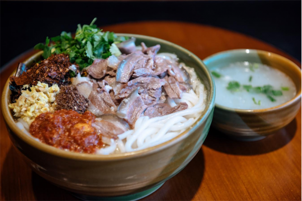 以新鮮羊肉,配以爽滑的米粉,加入鮮羊肉湯,及各種調(diào)料和具有特色的油辣椒,米粉入口即化,老少兼宜,羊肉肥瘦適中,油而不膩。這是會(huì)理市首屈一指的小吃——羊肉粉。