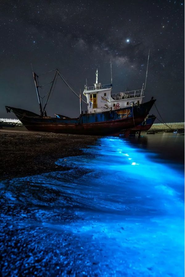 原本落幕的黑夜,卻被夢(mèng)幻的熒光藍(lán)點(diǎn)點(diǎn)亮。