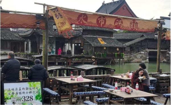 清晨,天剛蒙蒙亮,充滿(mǎn)生活氣息的早市就已經(jīng)開(kāi)啟。早市期間,四鄉(xiāng)八鄰的村民都會(huì)搖著船出來(lái)喝早茶:糖炒栗子、梅干菜燒餅、餛飩、煎餃、包子……品種琳瑯滿(mǎn)目,想要吃啥,任憑自己選。
