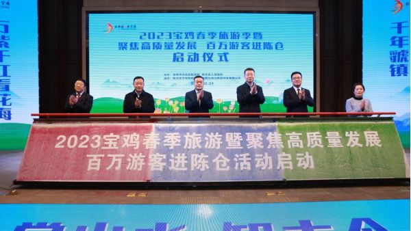 來自甘肅、青海、寧夏、四川、重慶、山西、河南等省市400余家旅行社及旅行商代表,寶雞各旅游區管委會、縣區文旅局、4A級以上旅游景區及各旅游協會負責人,中省市新聞媒體記者共計600余人參會。會上,中共陳倉區委書記馬霄致辭,市文化和旅游局局長周保君發布了2023寶雞春季文化旅游季、“引客入寶”、旅游惠民、旅游線路等相關政策信息,陳倉區人民政府副區長杜石磊介紹“聚焦高質量發展·百萬游客進陳倉”活動情況,寶雞旅游景區與旅行社代表簽訂了旅游合作協議,領導為“百萬活動”進陳倉代表授旗,與會領導共同啟動了活動,儀式由陳倉區人民政府區長馬小鋒主持。市政協副主席張德科出席了啟動活動,陳倉區區委、區人大、區政府、區政協和區級相關部門主要領導參加了啟動活動。