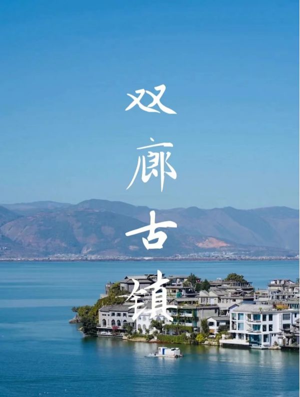 雙廊地處洱海東岸的“蓮花曲”和“蘿時曲”之上,距下關35千米,古稱“栓廊”。放眼望去,秀麗的玉幾島、小金梭島猶如一對鴛鴦,浮在碧綠的洱海之中,兩島位于兩廊之間的麗玲峰下,清咸豐年間,人們認為“二島”、“二曲”皆為“雙”,所以將“拴廊”改為“雙廊”。