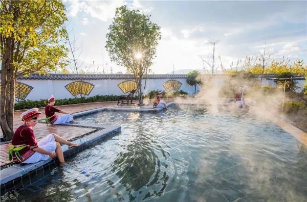 洱源九氣臺溫泉度假酒店的溫泉水,可聞到臭蛋氣味,應(yīng)為珍貴的硫磺泉。李時珍《本草綱目》引用陳藏器語曰“硫磺主治諸瘡,故水亦宜然。諸風筋骨攣縮,及肌皮頑痹、手足不遂、無眉發(fā)、疥癬諸疾,在皮膚骨節(jié)者,入浴……”現(xiàn)代醫(yī)學(xué)也證明,硫磺泉的確對種種皮膚病有較好的治療效果,此外對神經(jīng)系統(tǒng)、關(guān)節(jié)都有保健作用,還能改善人體新陳代謝。以此硫磺泉洗、浴、泡,完全是懶漢的有氧運動,并以視覺、嗅覺、聽覺、味覺、觸覺、心覺,六感知來達到一種身、心、靈舒暢的感覺,是一種瘦身、放松、休閑健康新概念。