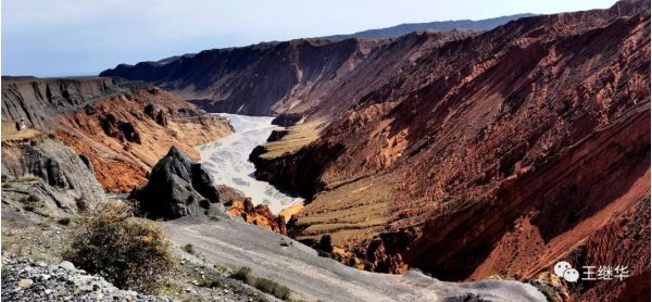 雖然緊張,還是被這十分壯觀的山體,復雜的谷底,湍急的河水,沖刷的像大樹一樣的圖案,紅綠相間絢麗的山體所深深地吸引,流連忘返。直到劉會長呼我,才從美麗的畫卷中驚醒出來。太美了!心中不斷的贊嘆。