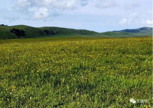 一看手機今天是小暑,這應(yīng)該是三伏天最熱的時候,可是我們在在這大山里凍得瑟瑟發(fā)抖。這個地方叫人體草原,遠處是九曲18灣,整個的山脈像一個個穿著綠色的緊身內(nèi)衣的人體。你可以想象這是一個多大的人有多少公斤。造物主是多么神奇,這里造個人,哪里再仿造一個。像量子力學糾纏的原理。