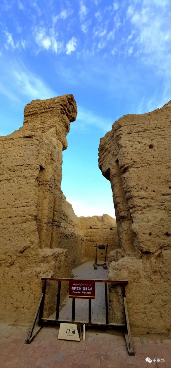 小楊說交河故城,建筑形式就是從地面上向下挖,就像我們看到的工藝品透雕一樣,把土挖出來,留出房子的四堵墻。再架上房梁蓋上房頂,然后挖出街道。一個地面下的城市就完成了。到了漢末,有了改進,把挖出的土蓋成了第二層的墻,這樣故城的建筑就有了兩層。故城有里面,有衙署,倉庫,居民區(qū)和多處寺院,當(dāng)年居住人口達(dá)到6000多人。比后來的高昌故城的30000人少很多。小楊邊走邊娓娓道來,如數(shù)家珍,顯示出了學(xué)歷史歷的功底。