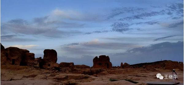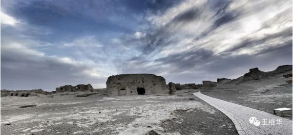 背景的彩霞黑云混合成放射性的霞光,很好的映襯了故城的蒼涼,凄楚,古樸,遠(yuǎn)久的前景,達(dá)到天城合一。