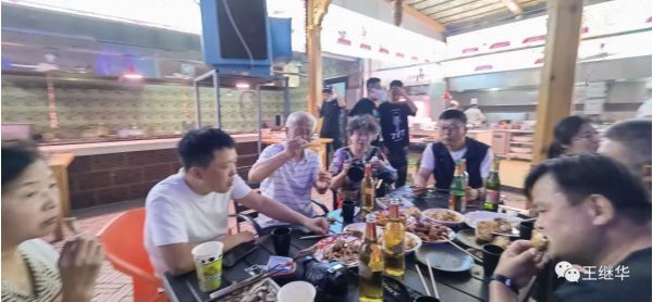 在公路休息區(qū),隨團的女子攝影協(xié)會付會長姜曉紅和攝影家彭曉榮請大家在巴音郭楞蒙巴倫臺“好朋友”飯店吃羊肉抓飯。羊肉特別鮮美,沒有膻味。應(yīng)該做核酸檢測了,現(xiàn)在監(jiān)測點到處都是。吃完飯發(fā)現(xiàn)隔壁正好有核酸檢測點,大家順便做了檢測,后天就要回家了。