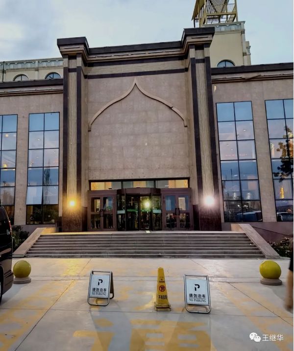 東京89度。北維41度。酒店是新疆吐魯番的風格,可以達到四星級標準。門口有一個10米高的大囊坑模型。院子內有很大的葡萄莊園,發現和夜巴扎是一個院子。