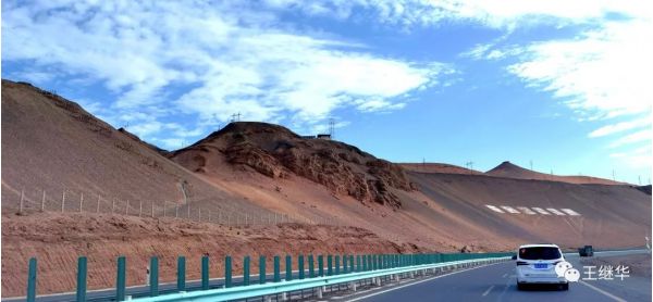 上車很快就路過火焰山,昨天我們酒店的一個顧客說,地表溫度達到了72度,手機報警不能開機,我們現在車里顯示是是40度也沒敢下車。再向前走,一路上周邊都是葡萄干的晾曬房,一個接著一個,絡繹不絕。