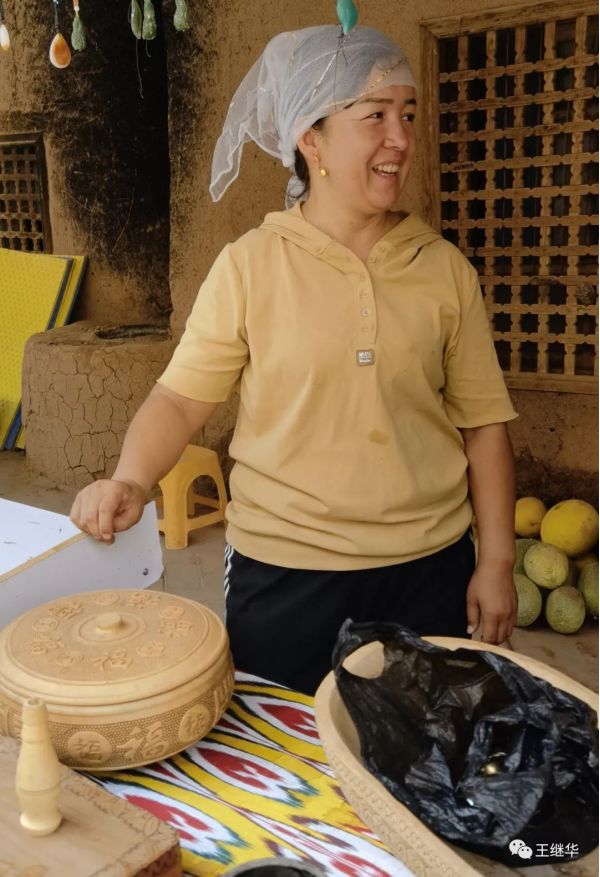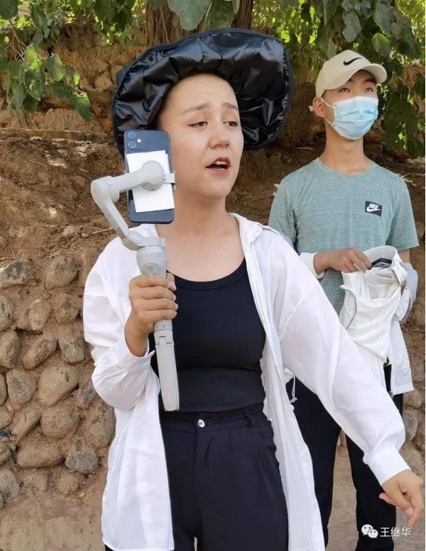 繼續前行看到一個搞抖音直播的維族姑娘。給我們說自己叫瑪依熱,在山東高校免費上過大學。畢業就回到了家鄉。搞了個網上直播帶貨,買哈密瓜,生意非常好。