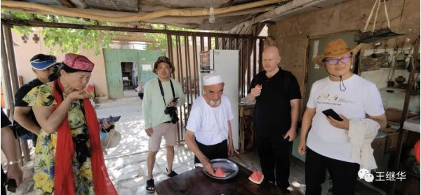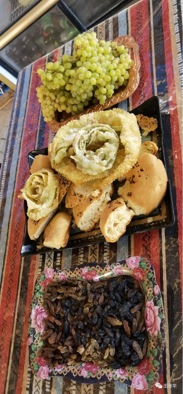 因為買了他的西瓜另外還送了一盤子葡萄,一盤子囊,一盤馓子。古麗說今天是古爾邦節,所有東西都打折,希望你們和我們一塊分享節日快樂。雖然經過多年的市場經濟,在這里還是可以看到淳樸的民風和少數民族的熱情好客。我們坐在這兒喝了一會兒茶,為了照顧老板的生意,我們一行紛紛解囊買了一些葡萄干兒,因此吸引很多顧客的一擁而上,瞬間就賣了50公斤。看來,維吾爾族人也非常會做生意,深諳“舍得”的原理,今天雖然亞克普開始投入了很多,他也不確定能得到回報,但他知道一旦自己的真誠感動了顧客。生意滾滾而來。擋都擋不住。我在網上查了一下,這是維吾爾族保留的最好的村落,已經有1700年的歷史。