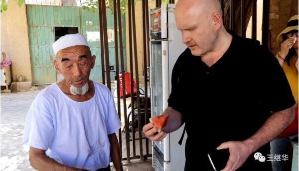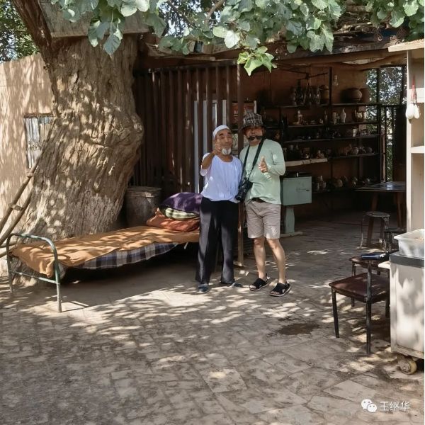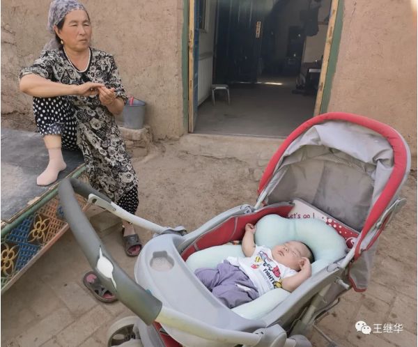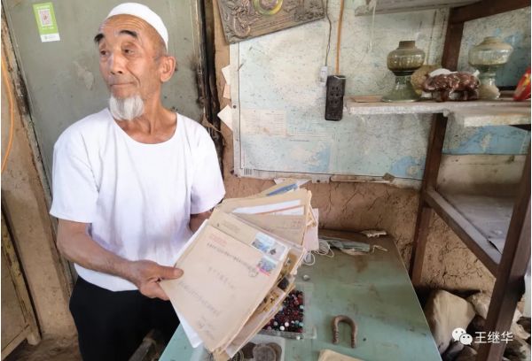 老頭叫阿不力駿今年75歲,后面那個中年男人是她兒子。