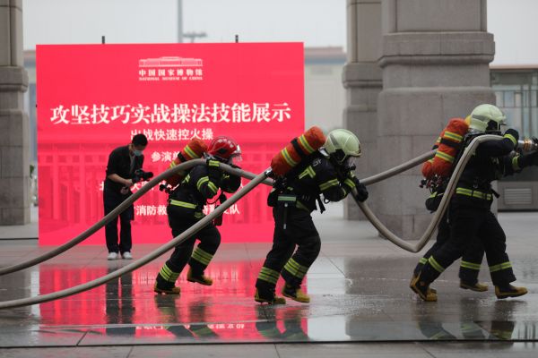 本次演練在國博黨委領(lǐng)導(dǎo)下,聯(lián)合北京市公安局天安門地區(qū)分局、北京市天安門地區(qū)消防救援支隊、北京市東城區(qū)消防救援支隊、北京市西城區(qū)消防救援支隊、北京市特勤支隊、武警北京總隊執(zhí)勤第一支隊共同實施。演練通過刺殺操方陣、安檢應(yīng)急處突能力、一警六員培訓(xùn)成果、攻堅技巧實戰(zhàn)操法技能、展廳滅火疏散演練、滅火救援聯(lián)合訓(xùn)練等科目展示,實戰(zhàn)模擬了警戒疏散、現(xiàn)場救援、應(yīng)急指揮、部門聯(lián)動等環(huán)節(jié),全面檢驗了安全保衛(wèi)技能技術(shù)和安全管理科學(xué)規(guī)范水平,有效提升了對突發(fā)公共安全事件應(yīng)急處置的綜合能力。