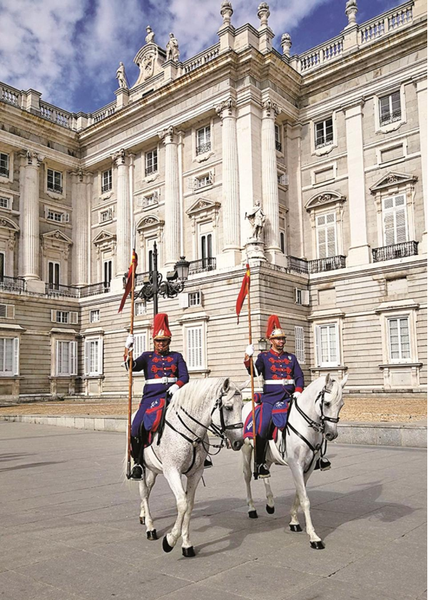 據(jù)導(dǎo)游介紹,西班牙馬德里皇宮建造設(shè)計(jì)參考了巴黎盧浮宮的草圖,王宮內(nèi)部每個(gè)房間都各具特色。皇宮里面藏有不少珍寶級(jí)的繪畫(huà)、瓷器及其他皇室用品。現(xiàn)在西班牙皇宮已被辟為博物院,雖然皇宮仍然是官方的皇室駐地,但國(guó)王并不居住在此,只是偶爾來(lái)這里辦公,如果有幸看到皇宮屋頂?shù)膬擅嫫鞄猛瑫r(shí)升起,那就表明國(guó)王恰好到這里辦公。