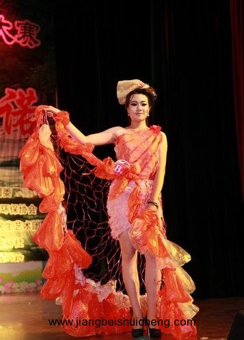 比賽中,各支參賽隊(duì)伍將廢棄蚊帳、塑料袋等元素合理利用,緊貼"綠色生活,青春承諾"這一主題,創(chuàng)意獨(dú)特,給在場(chǎng)的觀眾帶來(lái)了一場(chǎng)完美的視覺(jué)盛宴,贏得了陣陣掌聲。