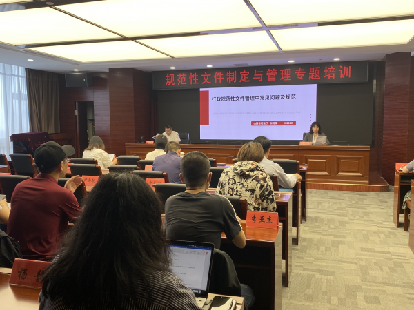 張明厚處長(zhǎng)培訓(xùn)圍繞規(guī)范性文件制定和審查各環(huán)節(jié)中常見(jiàn)問(wèn)題進(jìn)行了深入講解,結(jié)合具體案例進(jìn)行分析,加深了大家對(duì)規(guī)范性文件的認(rèn)識(shí),對(duì)工作中容易出現(xiàn)的問(wèn)題做了進(jìn)一步強(qiáng)調(diào)。