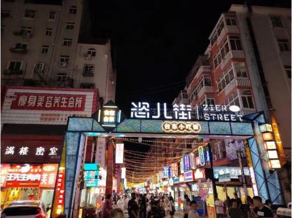 當(dāng)夜的序曲輕輕奏響,青島市臺(tái)東步行街上,充滿復(fù)古氣息的燈牌漸次亮起,各式特色小吃攤位上煎炒烹炸聲夾雜著吆喝聲、嬉笑聲,吸引著不少市民游客前來(lái)這里休閑消費(fèi),感受濃濃人間煙火氣。