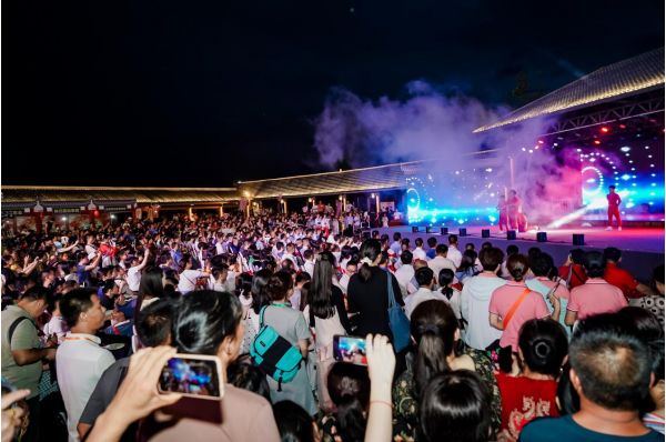 開街儀式以“楚風+晚會”的模式進行,儀式之后,廟會3個小舞臺也陸續上演精彩節目。在橘頌廣場的民俗舞臺上,火把舞、上刀山、雜技蹬缸、變臉、柔術表演輪番上演。在離騷廣場的非遺舞臺,皮影木偶戲驚艷亮相。在華麗精致的畫舫游船上,舞蹈演員伴著古樂翩翩起舞,為游客呈獻了新穎的“水上視覺盛宴”。當晚,主舞臺還有非遺傳承人帶來的茶館評書。