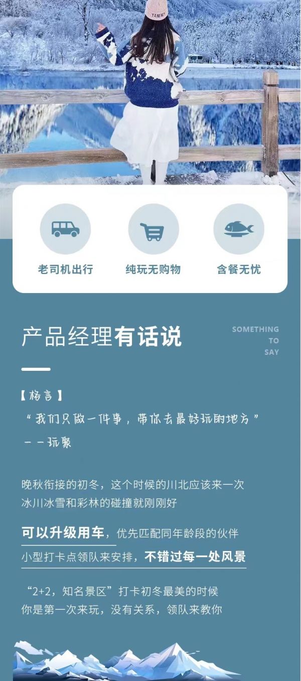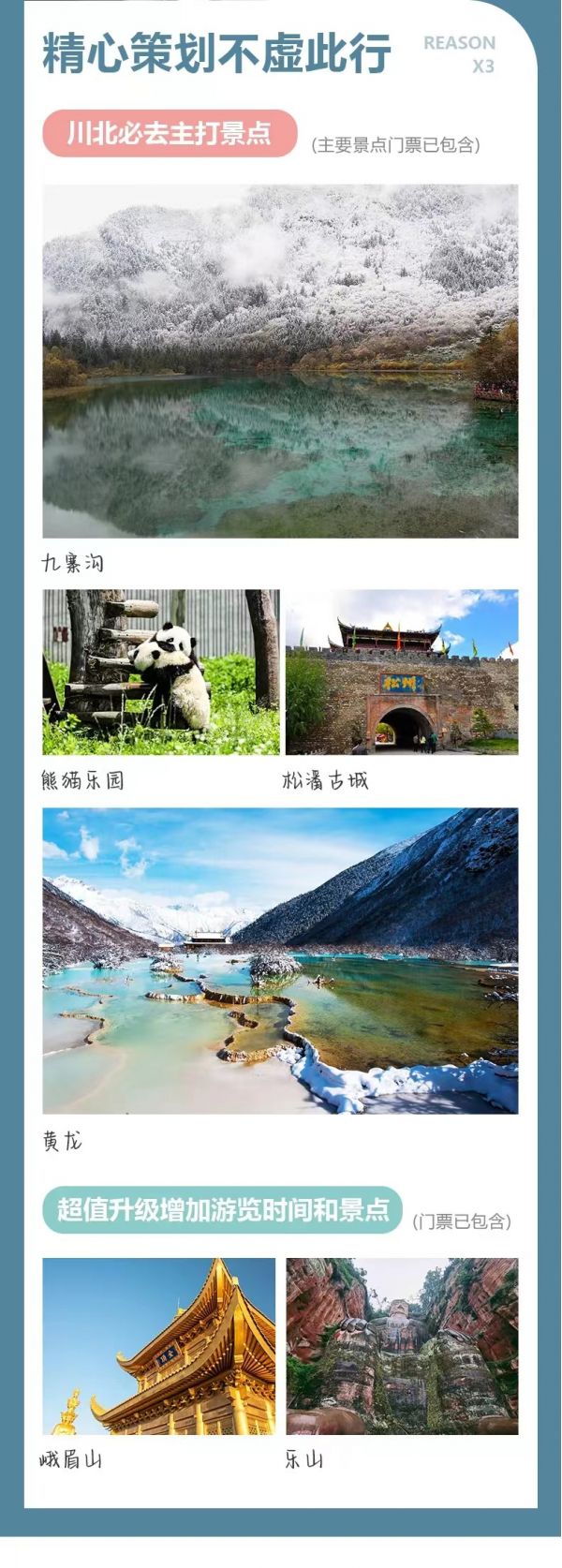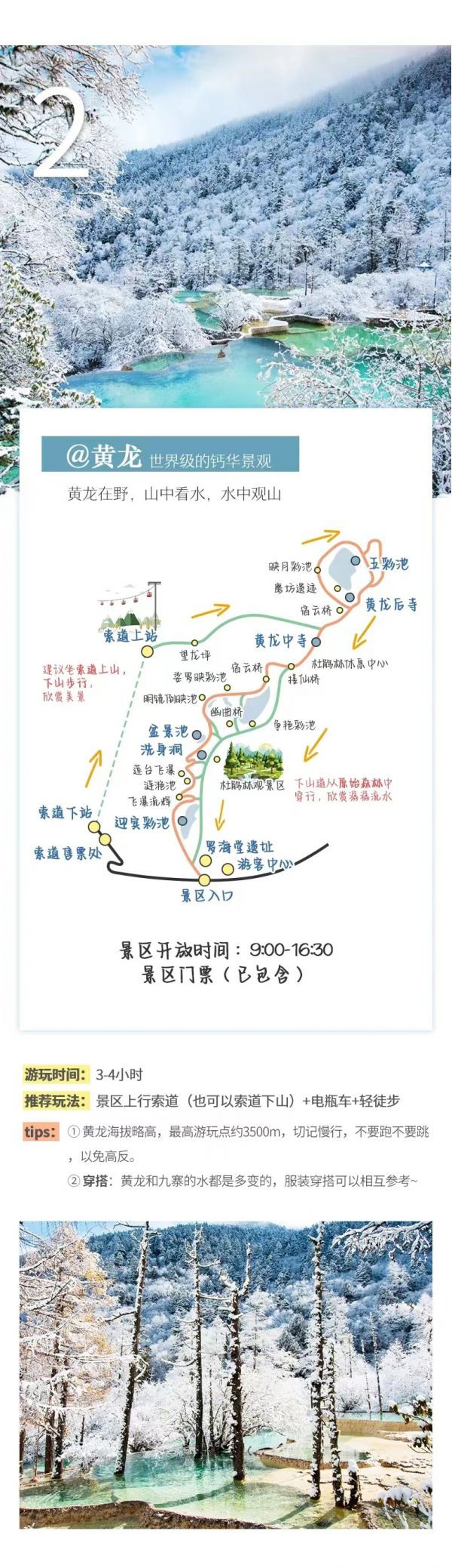 (3)特別提示:12月16日-3月31日期間黃龍索道停運,屆時需步行上下游覽黃龍景區,敬請知曉。