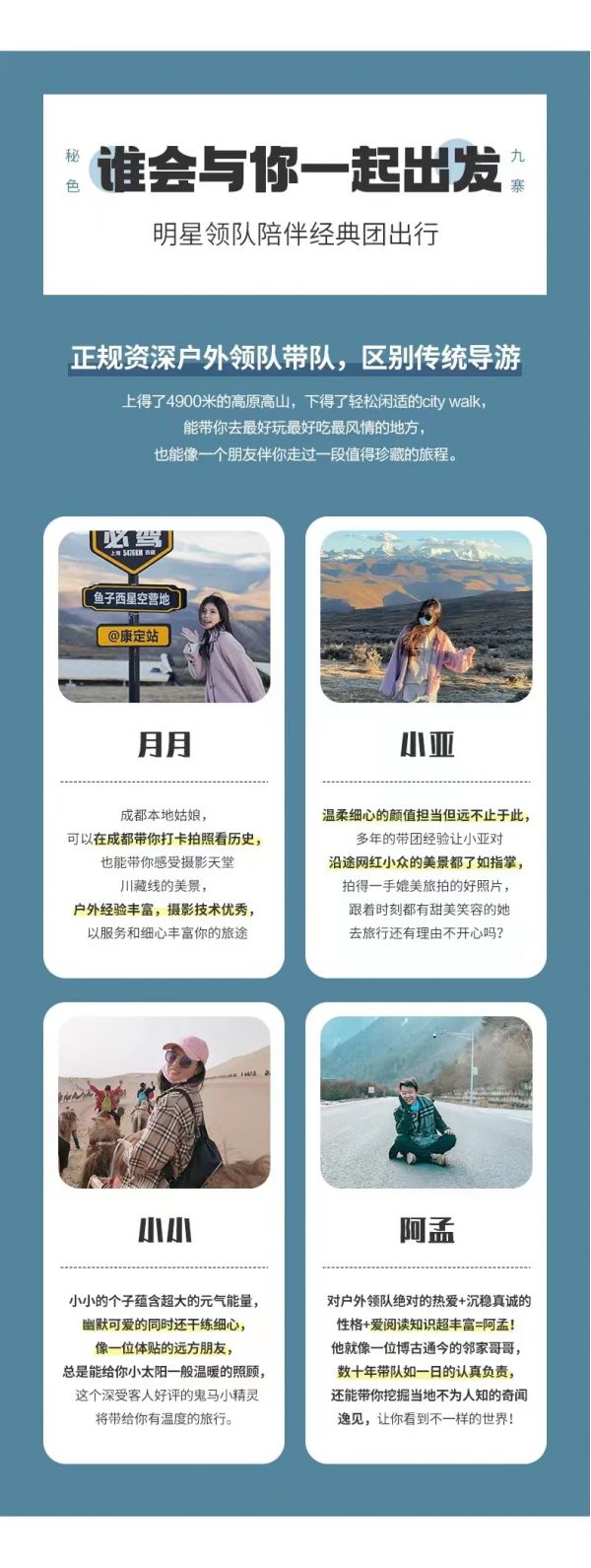 3. 建議隊員們在集合日抵達成都后,可在市區采購一些旅行用品,如零食、佐餐小菜、藥品等;